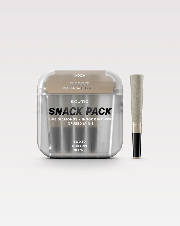 Buy the Boutiq Snack Pack Live Diamonds 2.5G Minis – Biscoff Infused with Jelly Roll today from the Boutiq Switch official website and enjoy a powerful, terpene-rich hybrid pre-roll pack that sets a new standard for infused minis.