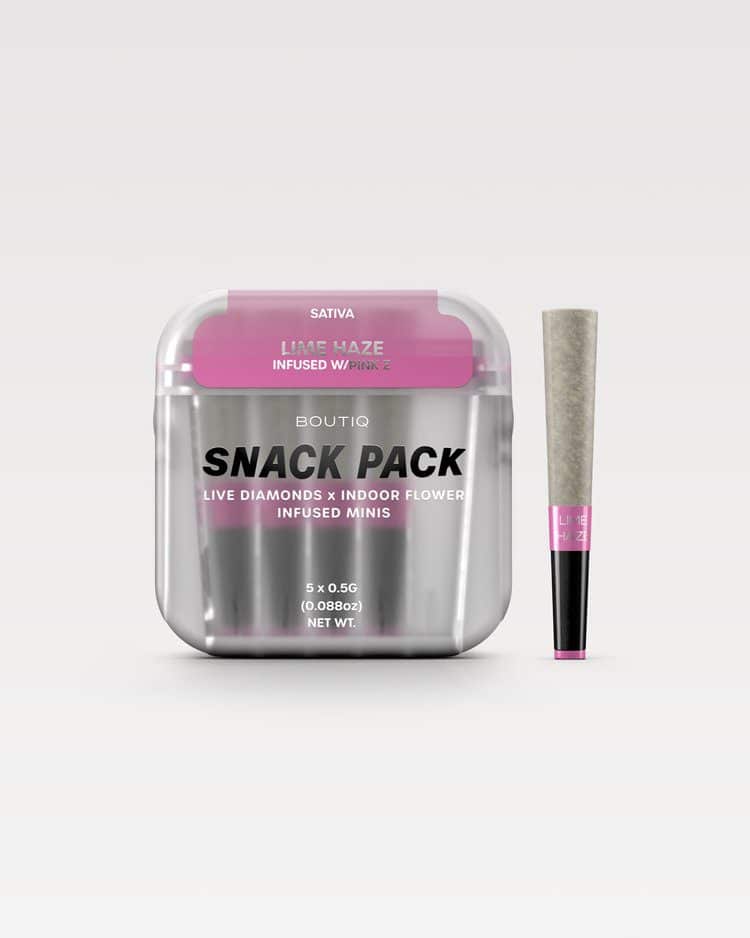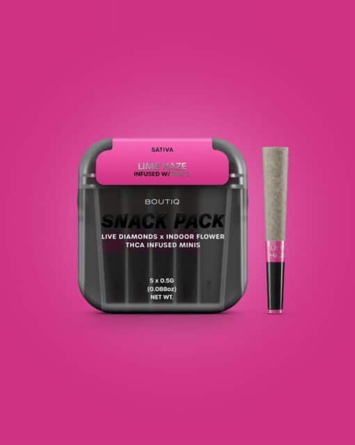 Buy Boutiq Snack Pack Live Diamonds 2.5G Minis – Lime Haze Infused with Pink Z today from the Boutiq Switch official website. Enjoy a premium, flavorful, and potent cannabis mini pre-roll that’s perfect for both new and seasoned users.