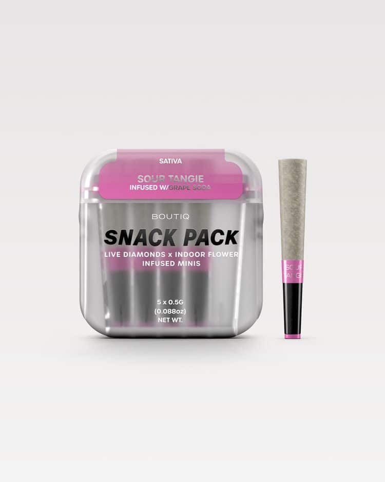 Order your Boutiq Snack Pack Live Diamonds 2.5G Minis – Sour Tangie Infused with Grape Soda today from the Boutiq Switch official website and enjoy a flavorful, potent pre-roll experience made for any moment.