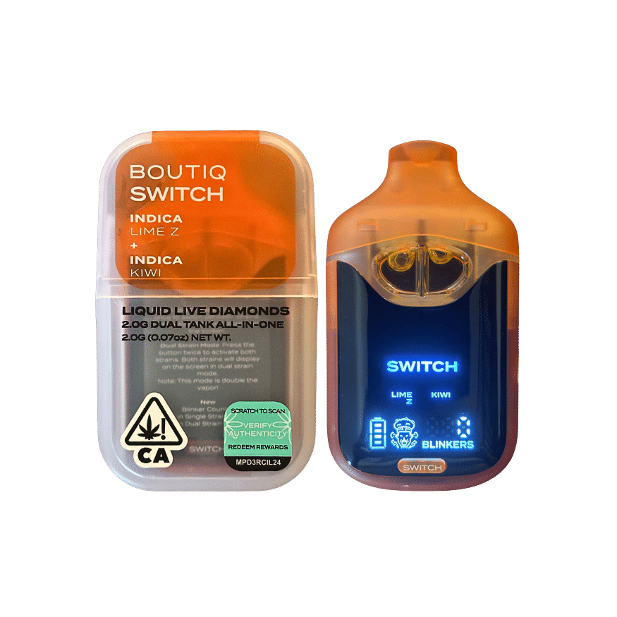 Experience bold citrus and fruity bliss with the Boutiq Switch V4 Lime Z x Kiwi 2G Disposable Vape. Dual-tank, rechargeable, and powered by 92.93% THC Liquid Live Diamonds. Buy now for the best price! Check out the Boutiq Switch V4 Biscoff x Jelly Roll for a dessert-inspired duo! Feature Details Product Name Boutiq Switch V4 Lime-Z x Kiwi – 2G Disposable Vape Type Liquid Live Diamonds Disposable Vape THC Potency 92.93% Strains Lime Z (Indica) × Kiwi (Indica) Oil Content 2 Grams (2 x 1g dual tanks) Device Features Rechargeable, Digital Display, Blinker Counter, Preheat Function Inhalation Method Draw-Activated, 1.6Ω Ceramic Coil Charging USB-C (Cable Not Included) Effects Balanced High, Citrus Clarity, Fruity Calm Flavor Profile Zesty Lime, Sweet Kiwi, Tropical Freshness Suggested Use Day or Night – Great for Solo Sessions or Social Chillouts